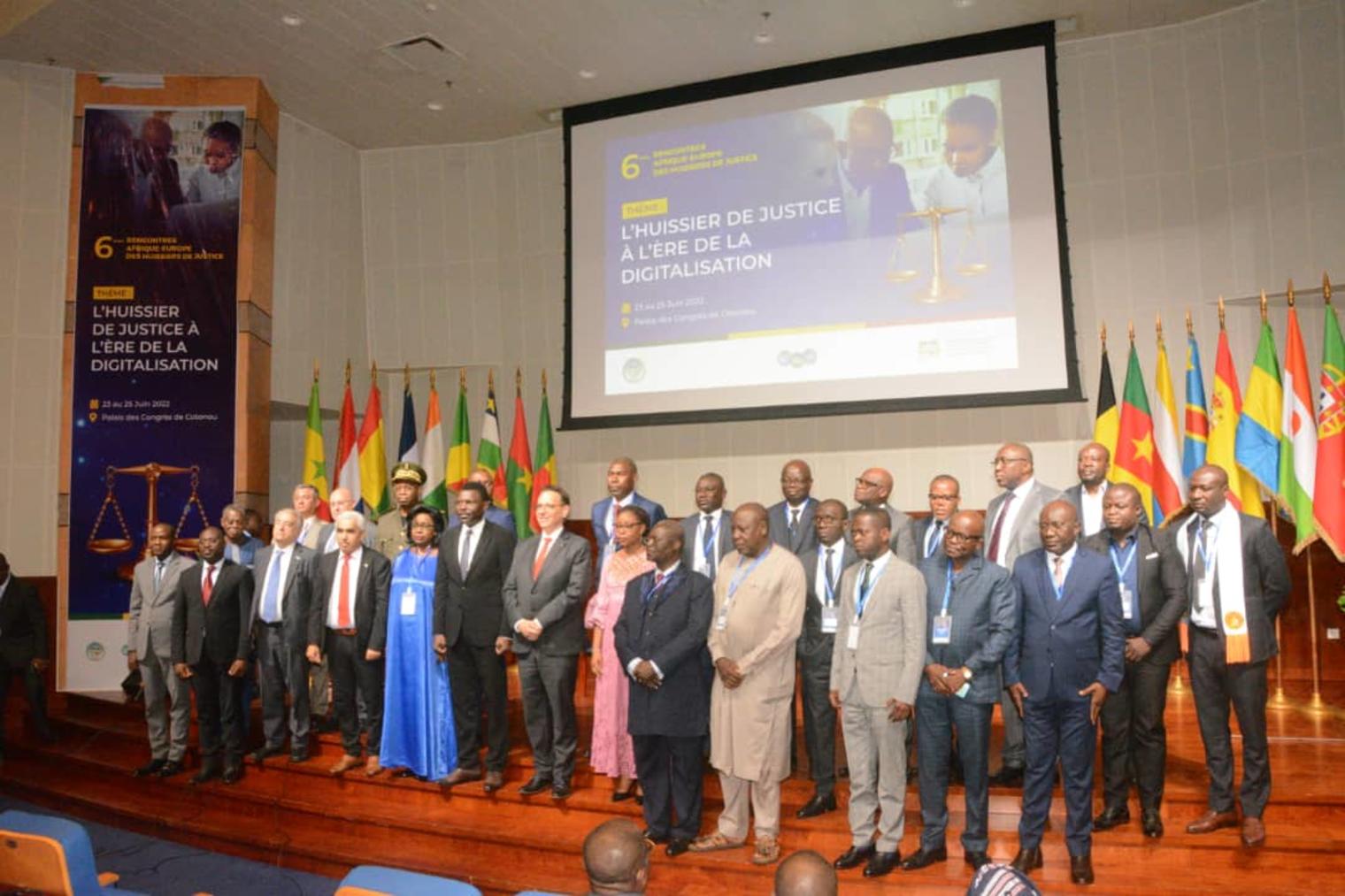 Le Palais des Congrès de Cotonou abrite depuis le jeudi 23 juin 2022, les 6èmes rencontres Afrique-Europe des huissiers de justice sur le thème ; « L’huissier de justice à l’ère de la digitalisation ». C’est le Ministre du Numérique et de la Digitalisation, Aurélie Adam Soulé Zoumarou représentant pour la circonstance, son collègue de la Justice et de la Législation Séverin Maxime Quenum qui a procédé à l’ouverture des travaux de ces assises en présence de nombreuses autorités politico-administratives et des acteurs du monde judiciaire.